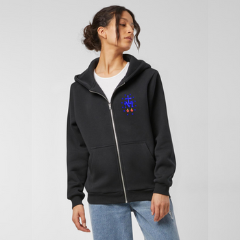 ( ilość produktów: 40 )Modna Granatowa Bluza Damska Rozpinana z Kapturem – pełen haft Niepokalane Serce Maryi (biały obrys)