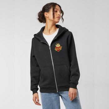 Modna Granatowa Bluza Damska z Kapturem – Motyw Najświętszego Serca Jezusa, Rozpinana