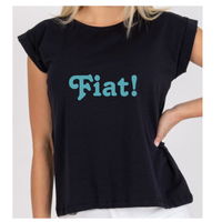 Czarna koszulka damska turkusowe przesłanie Fiat