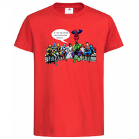 Koszulka żółta dla dzieci i młodzieży z bardzo kolorowym nadrukiem 1-6 lat (Jezus i Superbohaterowie)