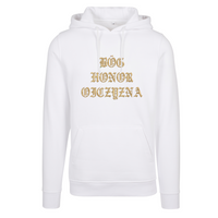 Biała bluza męska z kapturem - Bóg, Honor, Ojczyzna