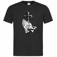 Czarna koszulka męska z nadrukiem symbolizującym męską modlitwę różańcową