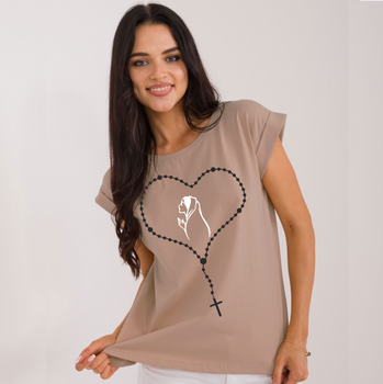 Ciemnobeżowa koszulka damska Różaniec Święty