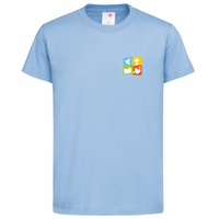 Koszulka w kolorze błękitnym dla dzieci i młodzieży (7-13 lat) Symbole Katolickie (Gołębica, Pismo Święte, Krzyż, Serce)