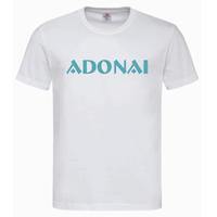 Biała koszulka męska Adonai (turkusowy nadruk)