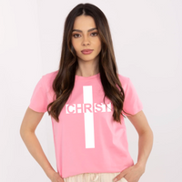 Różowa koszulka damska Jezus -Christ w Krzyżu