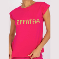 Koszulka damska w kolorze fuksji ze złotym nadrukiem Effatha (przesłanie kolor złoty połysk)