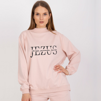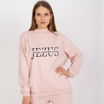 Modna bluza damska oversize w kolorze szarym - z czarnym nadrukiem Jezus - droga, prawda, życie