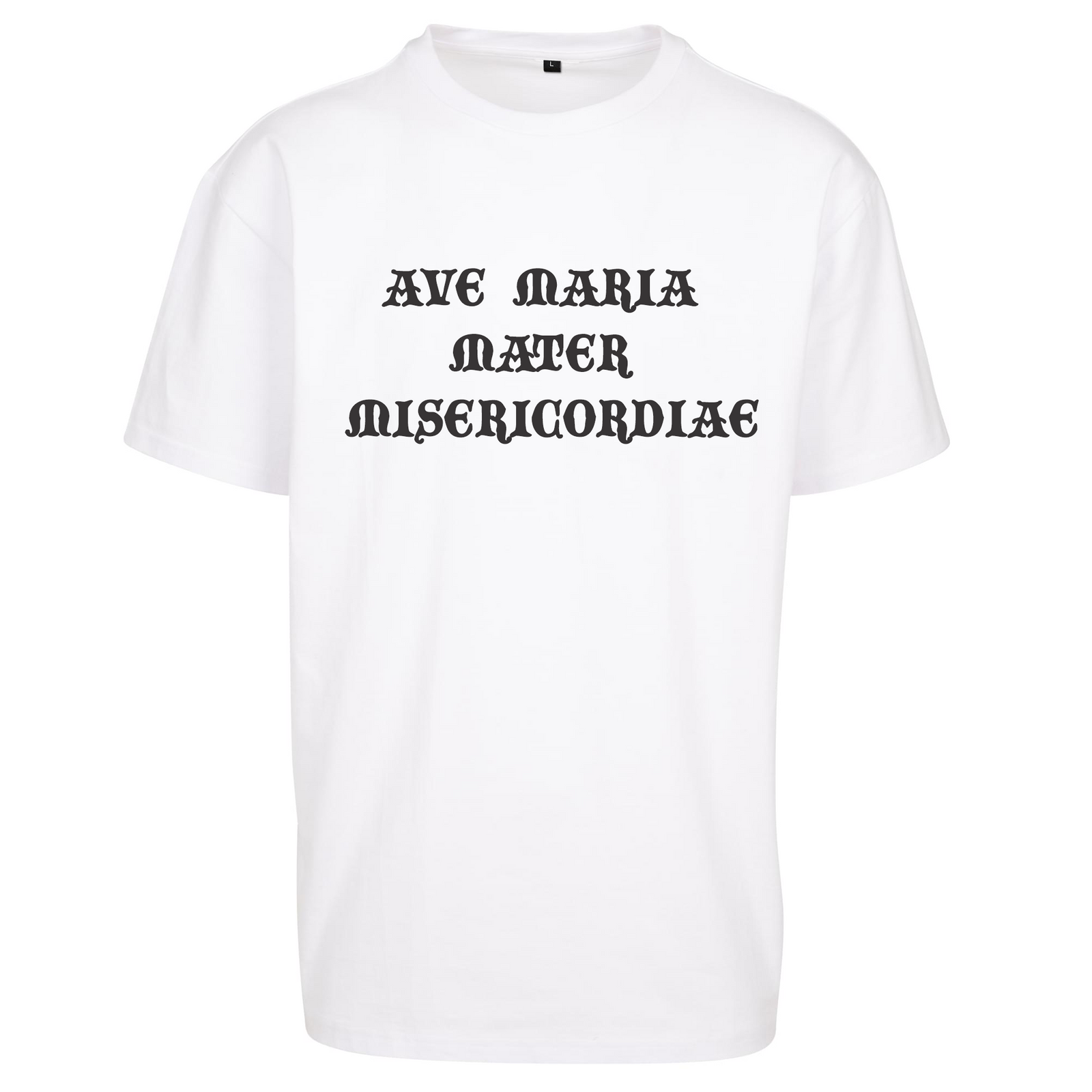 Biała koszulka męska z nadrukiem Ave Maria Mater Misericordiae