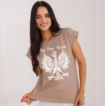 Ciemnobeżowa koszulka damska Patriotyczna - Godło Bóg Honor Ojczyzna