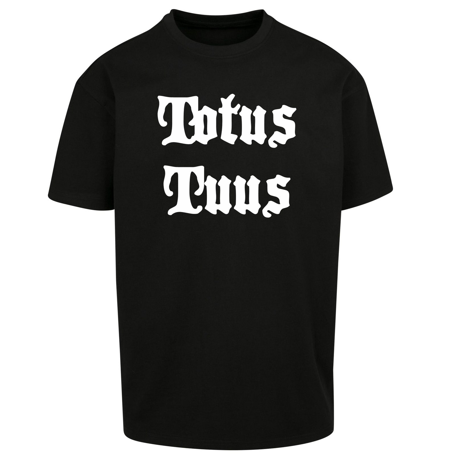 Czarna koszulka męska z białym nadrukiem Totus Tuus - cały Twój Maryjo