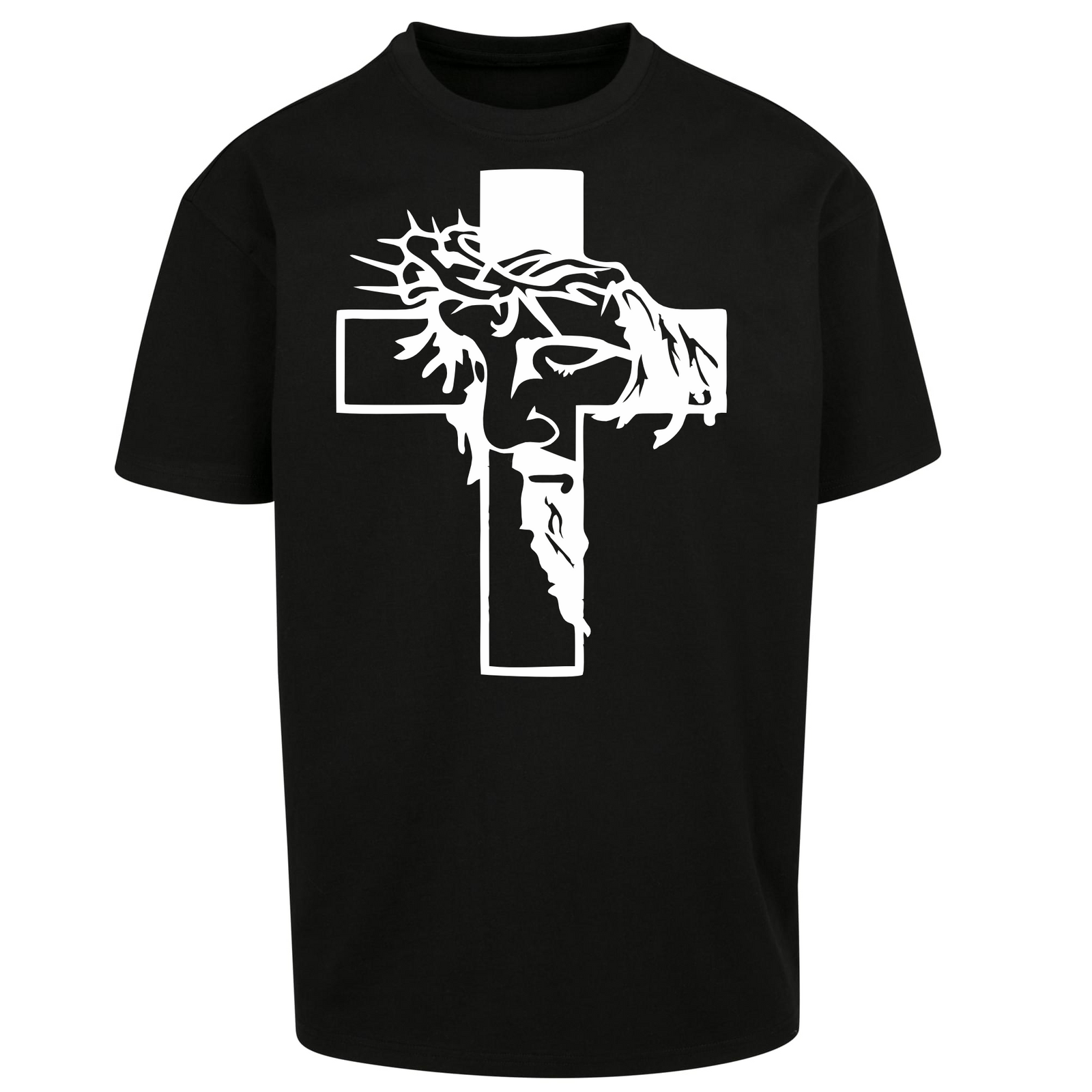 Czarna koszulka męska z nadrukiem Twarzy Chrystusa w Krzyżu