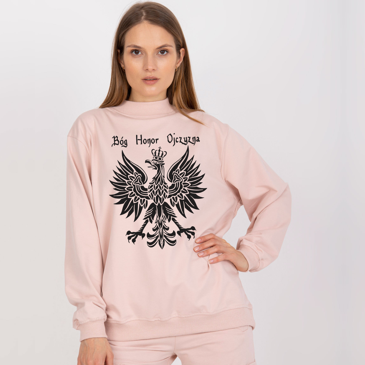 Jasnoróżowa bluza damska oversize z nadrukiem Godła, Bóg Honor Ojczyzna