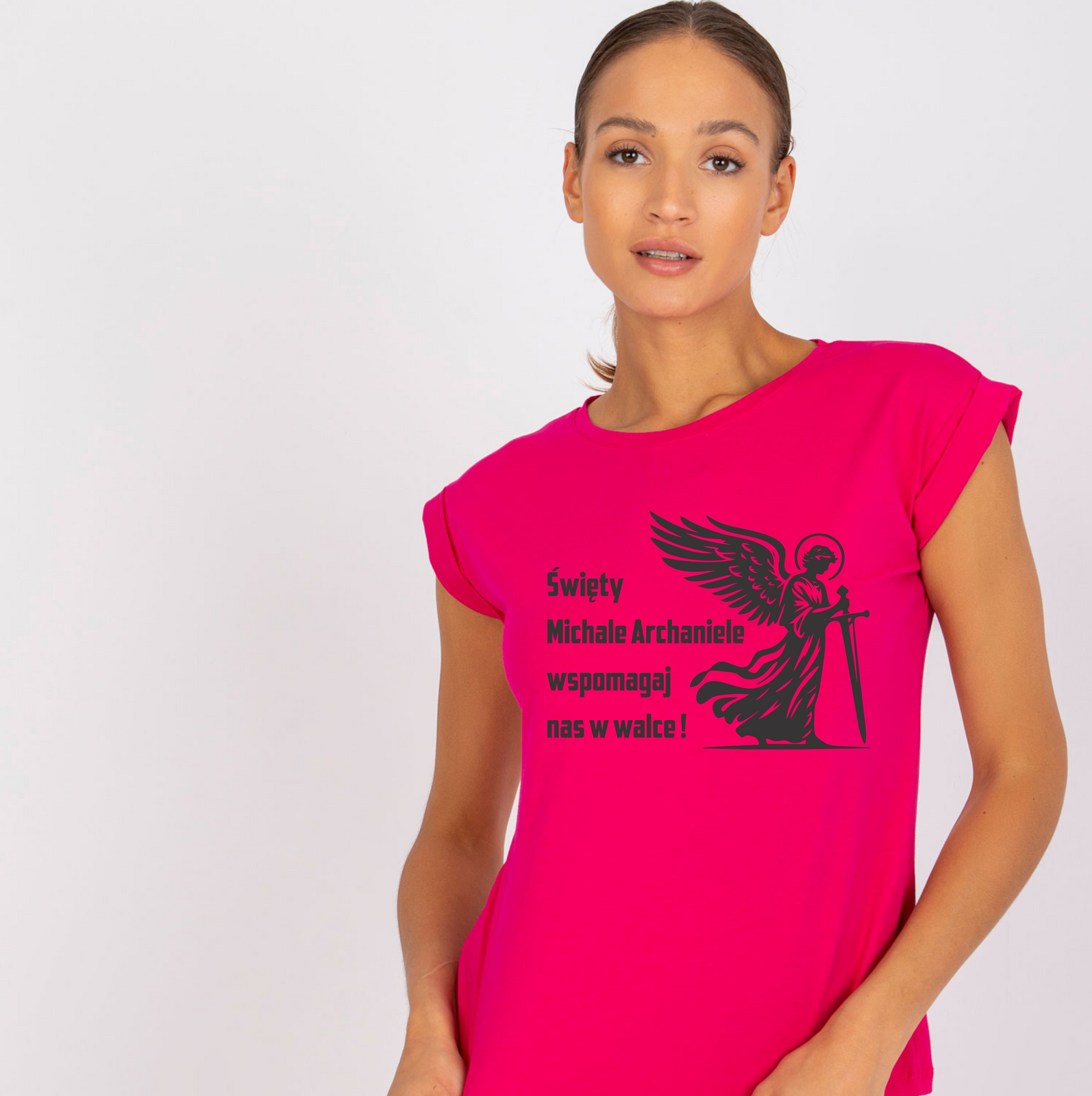 Koszulka damska w kolorze fuksji Święty Michał Archanioł