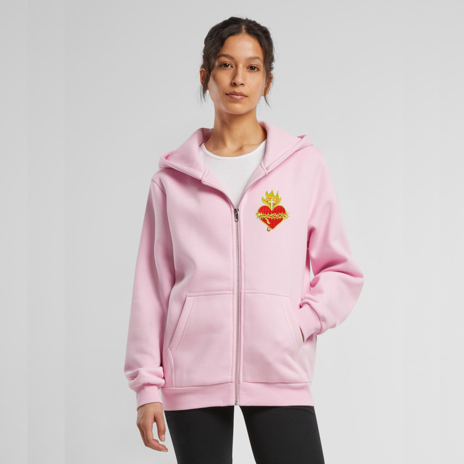 Różowa Bluza Damska Rozpinana z haftem Najświętsze Serce Jezusa