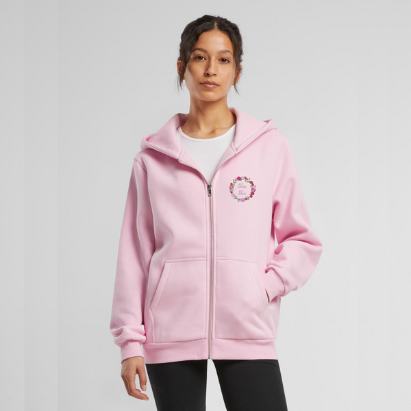 Różowa Bluza Damska Rozpinana z haftem Tota Tua-cała Twoja w wianku kwiatów