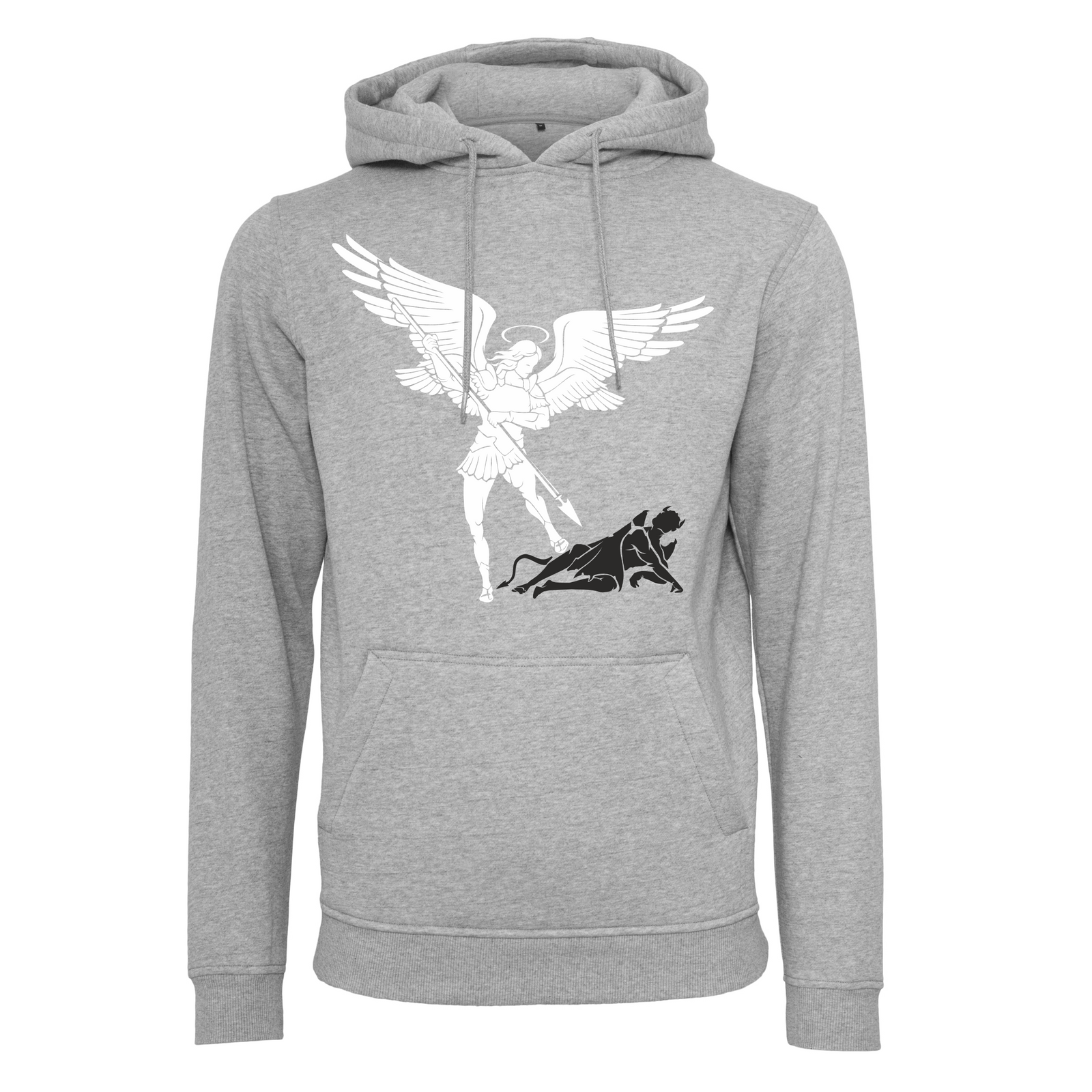Wysokogatunkowa szara bluza męska z kapturem - Święty Michał Archanioł
