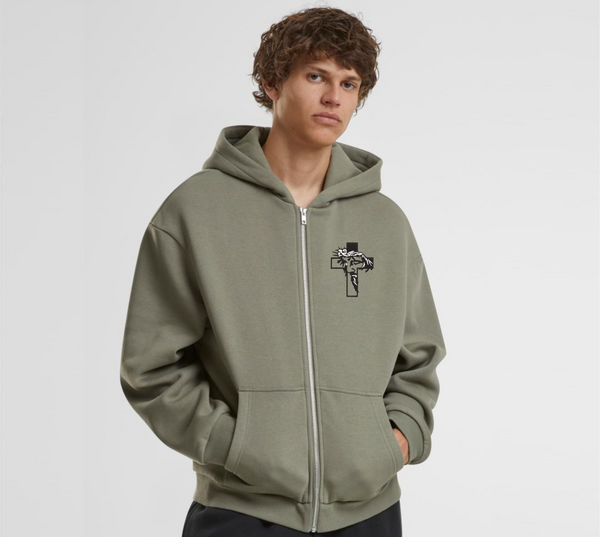 Zielona bluza męska rozpinana z kapturem Krzyż z Twarzą Chrystusa