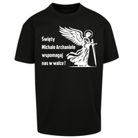 Czarny t-shirt męski z nadrukiem Święty Michał Archanioł