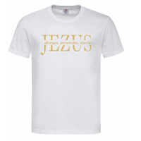Ciekawa koszulka damska w kolorze pudrowego różu Najświętsze Serce Jezusa (przesłanie kolor złoty mat)