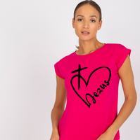 Koszulka damska w kolorze fuksji Serce z napisem Jezus