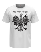 Biała koszulka męska Patriotyczna - Godło Bóg Honor Ojczyzna